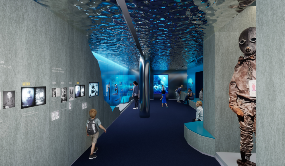 En sa qualité de cité historique de la plongée sous-marine, Sanary-sur-Mer mûrit depuis longtemps un centre d’interprétation baptisé Espace mer. Les travaux d’aménagement intérieur et de scénographie menés par Graepheme sur un programme d’AG Studio ont débuté cet été et l’ouverture est prévue à l’automne 2026. Il se déploiera sur 1 200 m2 en rez-de-chaussée d’un bâtiment neuf qui jouxte la médiathèque. ll s’agira de proposer aux visiteurs un parcours immersif alliant le scientifique et le poétique, l’interactif et le multimédia, présentant les thématiques de la plongée, de la découverte des abysses et la sauvegarde des mers. Une séquence dédiée aux familles abordera le grand cycle de l’eau. AG Studio qui assiste la ville de Sanary depuis 2021 pour la conception de la programmation architecturale, technique et muséographique de l’Espace Mer, pilote la conception et la réalisation des dispositifs multimédia et intervient dans la définition des contenus narratifs en lien avec le conseil scientifique.