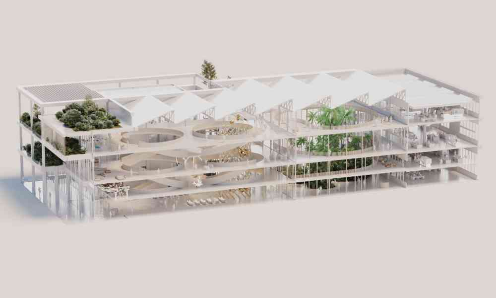 Le concept programmatique de ce nouveau lieu conçu par AG Studio appuyé par Artelia pour tous les aspects techniques, devait donc résoudre une équation complexe : conjuguer des activités ouvertes (accueil convivialité, échanges café, boutique, forum, expositions…) mais aussi de réflexion (mise au point de projets, coworking et des laboratoires généralistes de test et démonstration. Tout le bâtiment devant être conçu comme une structure modulaire, flexible voire réversible bien que dégageant une atmosphère chaleureuse et conviviale, favorisant les échanges entre les 400 utilisateurs présents simultanément…L’ensemble se développera sur environ 12 500m2 sdp. Y sera adjointe une nappe de stationnements, une station de d’amarrage et de recharge de petits véhicules ainsi qu’une maison expérimentale connectée.