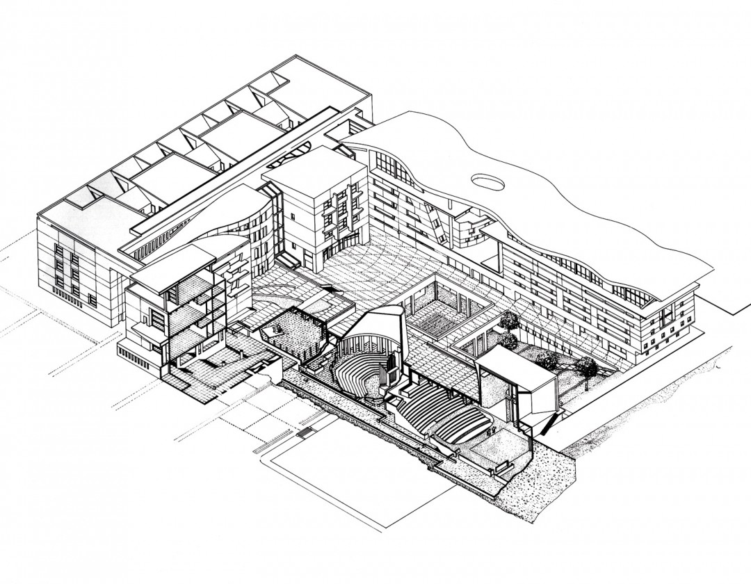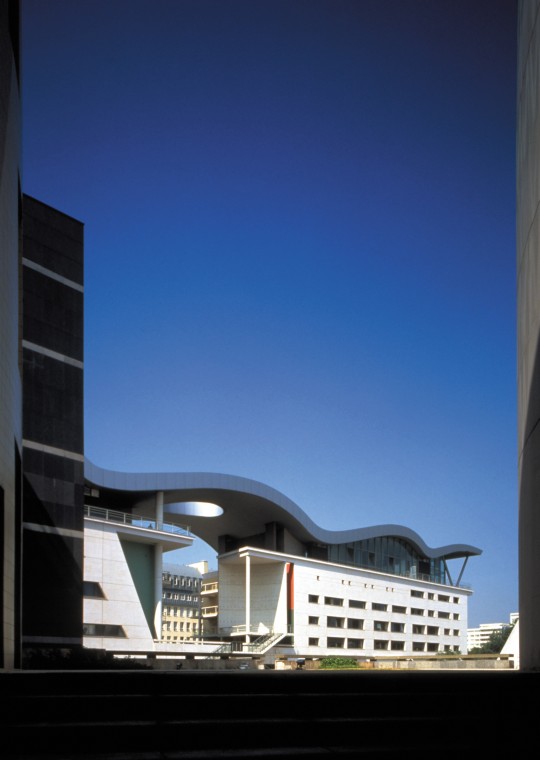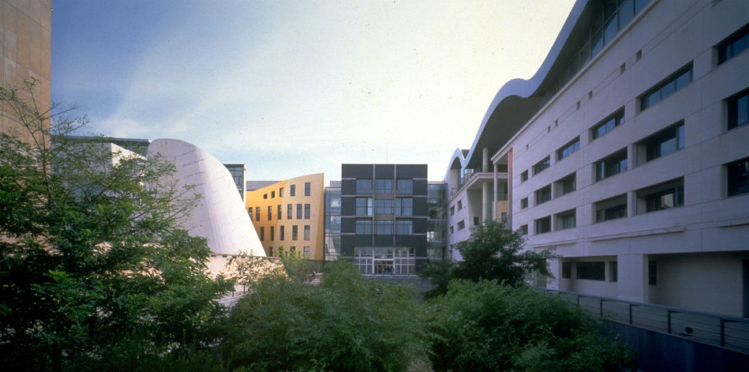 La partie Est était conçue comme un ensemble de lieux ressources pour le CNSMDP autour d'une grande salle de concerts modulable de 800 à 1200 places, un musée de la musique valorisant les riches collections de la rue de Madrid comprenant un laboratoire de conservation et d'études organologiques, un amphithéâtre de 250 places, un "children's corner" etc. Une résidence étudiante, des commerces et un café constituaient le village résidentiel de ce grand programme auquel a été adjoint un centre de recherche de pédagogie musicale. L'ensemble a été réalisé en 2 temps. La salle philharmonique prévue a été supprimée et recréée 20 ans plus tard. A l'occasion de l'inauguration de la première tranche François Guiguet, co fondateur de AG Studio, a reçu la distinction de Chevalier des Arts et Lettres.