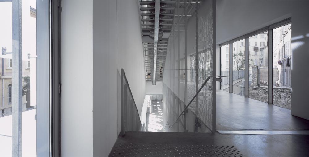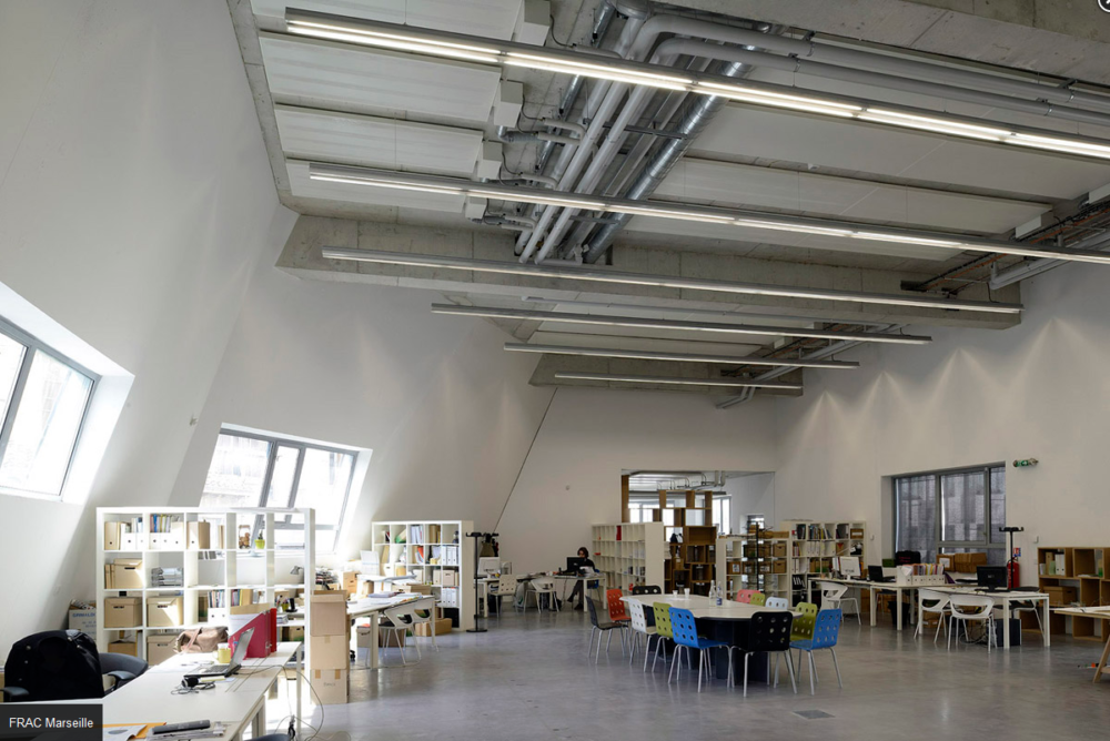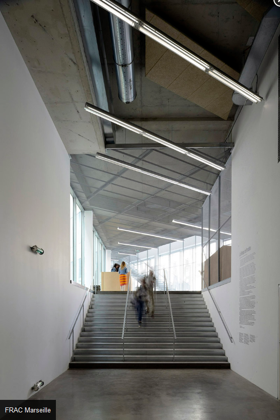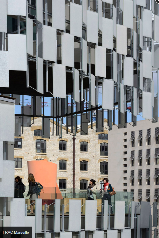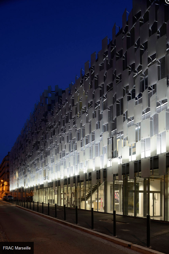 Le FRAC Provence Alpes Côte d'Azur, dédié à la conservation d'œuvres acquises en région PACA par le ministère de la culture, était initialement contraint dans un petit site industriel étriqué et devenu impropre à sa destination. Sa reconstruction était donc une nécessité impérieuse. La région a décidé une implantation sur le territoire d'Euroméditerranée Boulevard de Dunkerque à Marseille. AG Studio a été désigné pour mener cette mutation vers un FRAC de seconde génération, comme il l'avait fait pour le FRAC Bretagne antérieurement, puis pour ceux de Franche Comté, Aquitaine et Basse Normandie. Pascal Neveux son directeur a construit pour le FRAC PACA un projet artistique et culturel très ouvert à l'expérimentation, mais aussi à la médiation et à la documentation des artistes. Il a en même temps initié des principes de monstration diversifiés à l'extrême. La parcelle qui nous a été octroyée était restreinte, complexe et à revers de la rive urbaine principale, quasiment sans visibilité publique. AG Studio a mené une étude de faisabilité rigoureuse qui a conduit a revendiquer l'élargissement de l'assiette foncière vers ce qui en constitue actuellement la proue. La Région a donc acquis la pointe de l'îlot pour permettre d'une part une visibilité correcte du FRAC, mais aussi pour y développer des fonctions d'accueil au rez de chaussée (le café du FRAC). Kengo Kuma a transcendé toutes ces difficultés avec une maîtrise et une poésie sans égales, concevant un FRAC vertical mais très efficace, dépassant les handicaps de l'étroitesse de la parcelle et intégrant du même coup dignement le verso ingrat de l'immeuble d'habitation du revers d'îlot qui, lui, fait front côté Boulevard de Dunkerque.