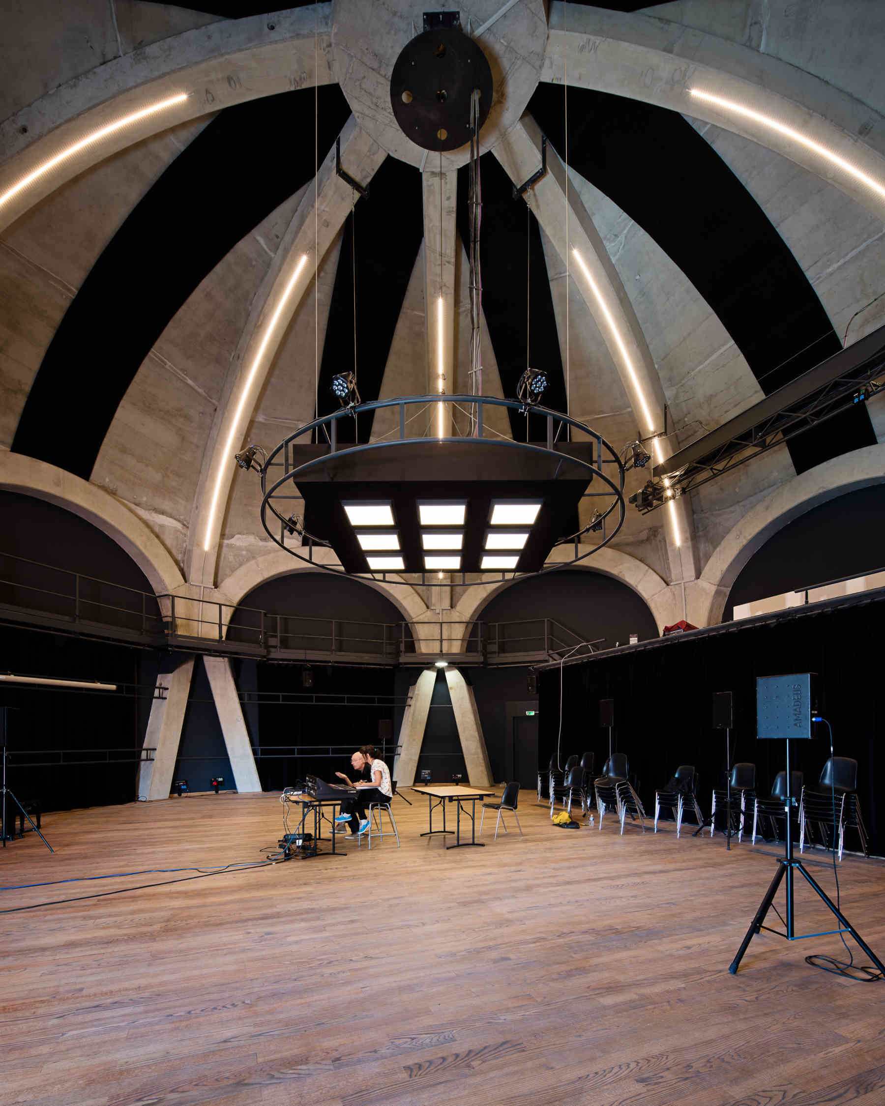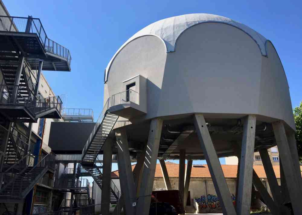 Le GMEM est un Centre National de Création Musicale dédié à la recherche musicale dirigé par Christian Sebille. Associé au GRIM de Jean Marc Montera, qui défriche des formes de musique improvisée, il est désormais hébergé dans la Friche de la Belle de Mai qui souhaitait développer un pôle de création musicale. La programmation des espaces de cette nouvelle composante a été confiée à AG Studio qui a développé un concept nouveau d'espace de travail (composition, jeu, enregistrement, post production)et de diffusion musicale, mais aussi d'espaces de vie et de gestion, que Matthieu Poitevin, architecte, a conçu comme un pavillon hémisphèrique en forme de château d'eau, posé à côté des anciens entrepôts de la friche dénommés "la réserve foncière". Cet ensemble inédit, parfaitement conforme à leurs fonctions, permet de faire exister formellement un projet artistique unique.