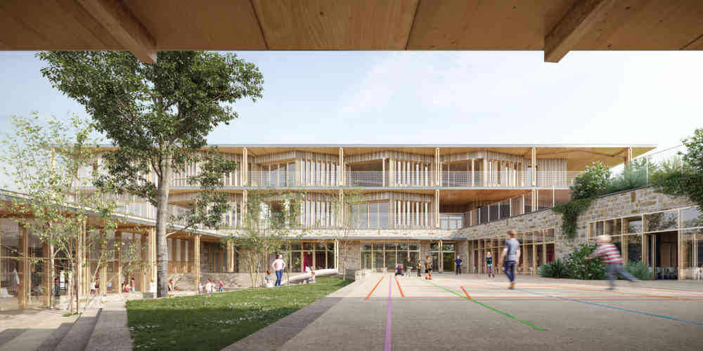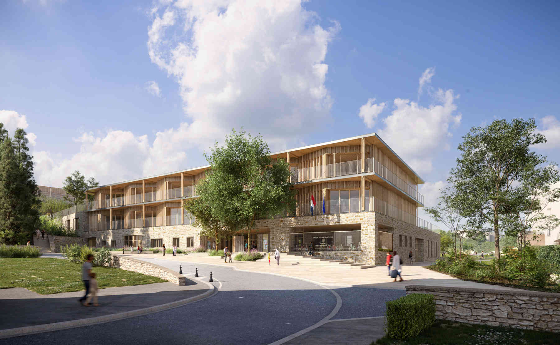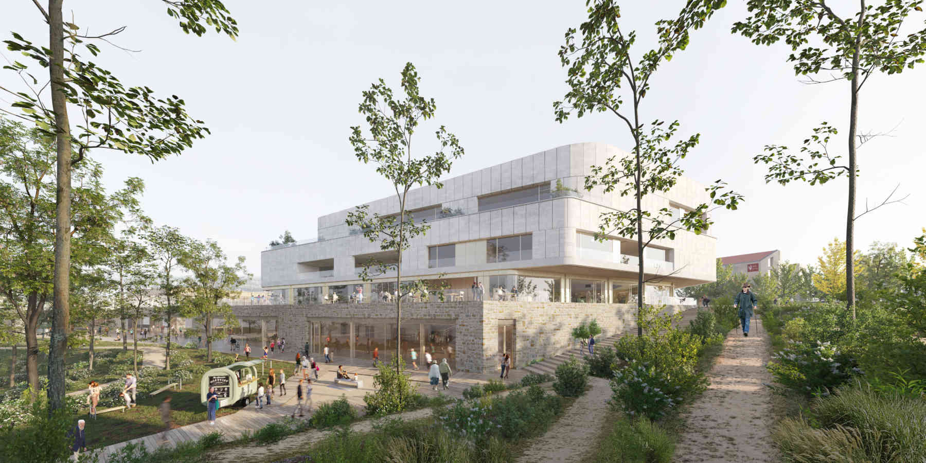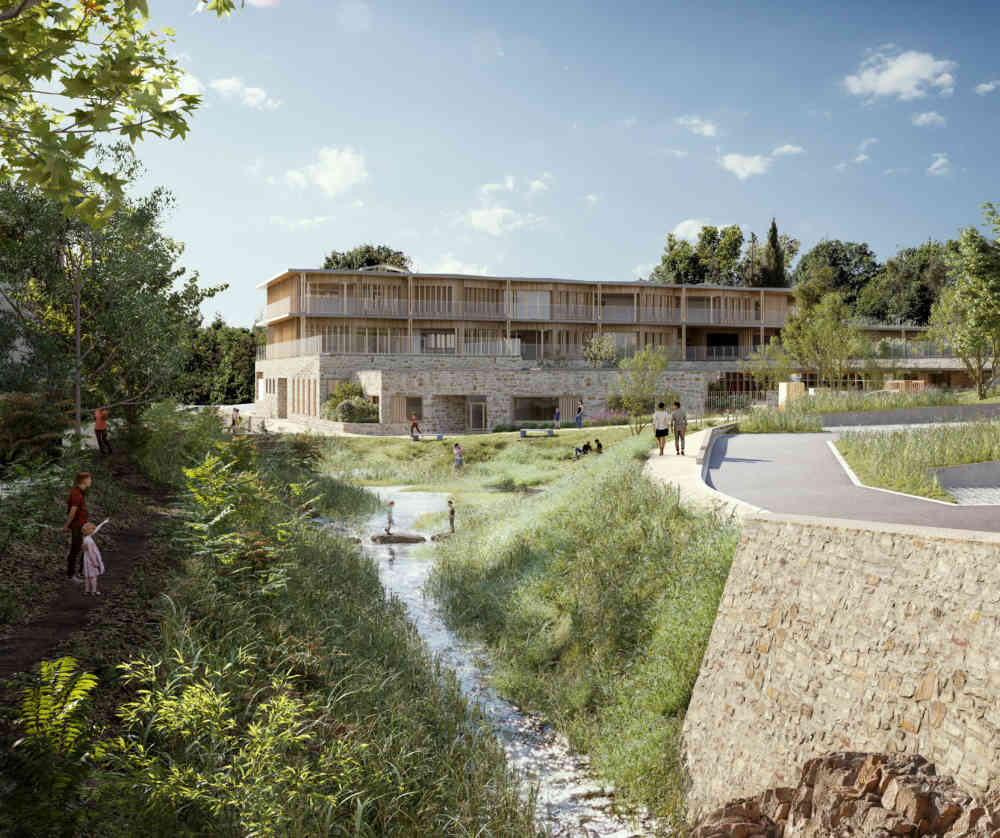• l’affirmation d’une identité commune, que ce soit dans la nature des espaces ou leur traitement architectural spécifique au sein de l’ensemble : les matériaux choisi par les architectes (pierre, bois), comme la riche palette végétale proposée par les paysagistes, remplissent un double rôle :