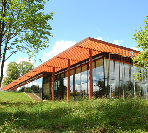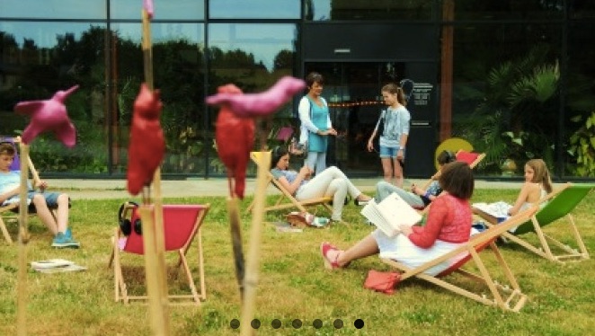 Le programme comprenait une médiathèque, une école de musique et des espaces associatifs. La première tranche constituée par la médiathèque a été réalisée. Tous les nouveaux standards de qualité de service d'une médiathèque contemporaine ont été intégrés en développant des espaces de convivialité particulièrement généreux pour correspondre à l'art de vivre local. Liard & Tanguy ont répondu au programme en apportant de surcroît un magnifique rapport au paysage environnant, dont un vaste plan d'eau. En forme de serre bois et verre en double hauteur, et disposant d'une double paroi de façade constituant un espace tampon thermique abritant un "cocon végétal" le bâtiment a été à plusieurs reprises distingué par sa qualité globale. Il figure dans l'ouvrage du Moniteur "Concevoir et réaliser une médiathèque".