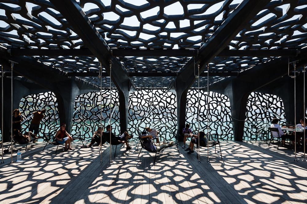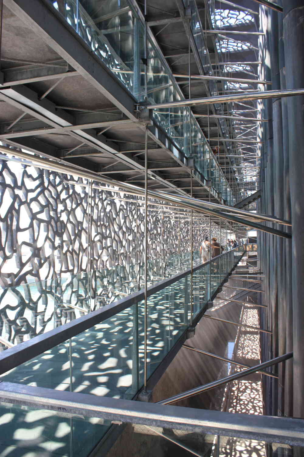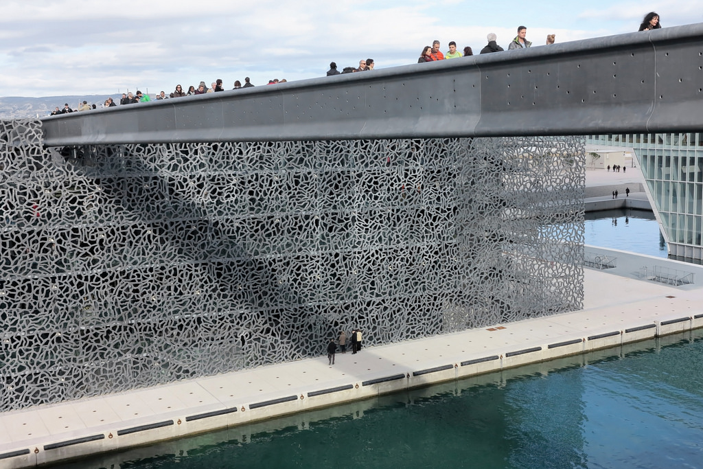 Le MUCEM est le grand musée de civilisation issu de la transformation du musée des Arts et Traditions Populaires. Le concept visionnaire de l'élargissement de ce périmètre thématique est l'œuvre initiale de Michel Collardelle, conservateur général du Patrimoine, ex directeur des ATP et du MUCEM. L'implantation à Marseille du grand musée montrant les multiples influences méditerranéennes de notre civilisation nous a semblé, à l'origine de la conception du programme, justifier la mise en scène par l'architecture du lien entre le quartier populaire du Panier et le musée. De ce concept programmatique est né la grande passerelle qui était l'un des défis du grand concours international lancé en 1998. Le projet lauréat intègre naturellement cette orientation programmatique et ajuste brillamment la position urbaine du musée en en faisant de plus un motif de déambulation périphérique, développant ainsi le premier regard des visiteurs sur les 4 facettes du paysage urbain. La notion de flexibilité imposée par notre programme a été élégamment traitée, malgré la réduction des hauteurs des plateaux dans le but de rester à l'altitude du plateau haut du Fort Saint Jean. Au total le succès public jamais démenti de ce grand site fait démonstration que la grande exigence d'un contenu peut également faire expérience pour le plus grand nombre.