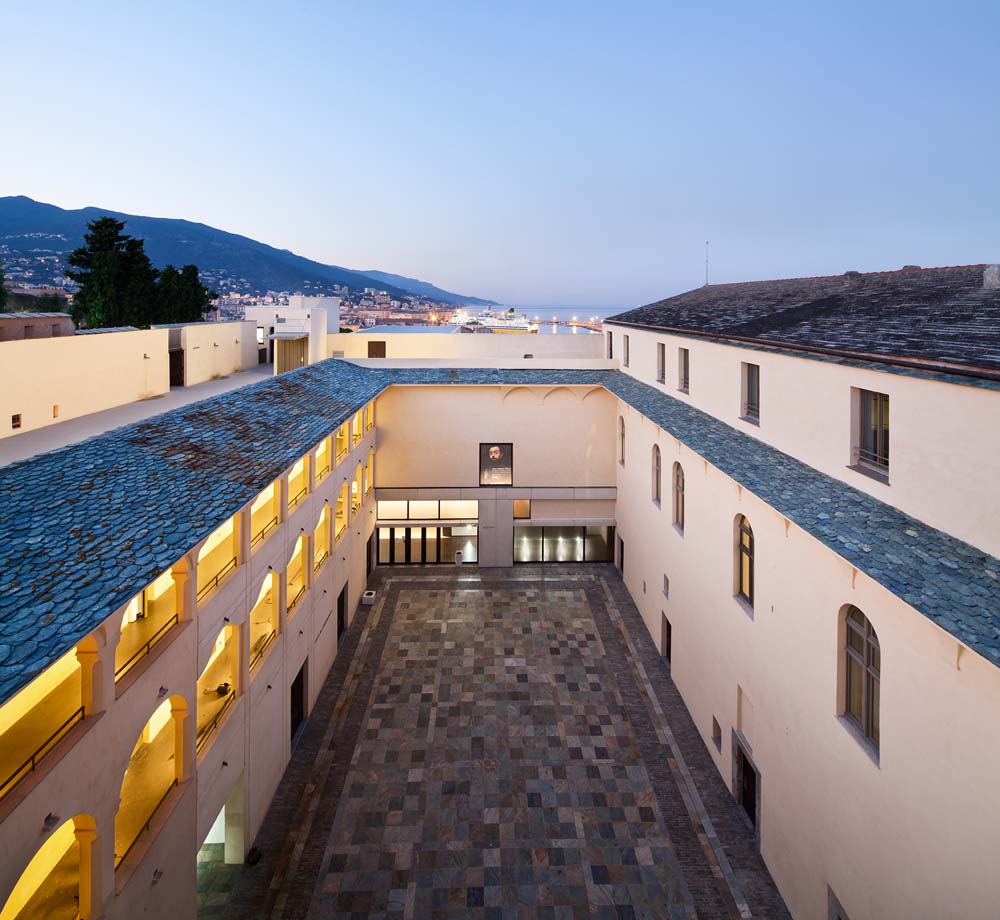 La demande initiale de la ville de Bastia consistait en la refonte complète d’un musée du type "musée de ville" essentiellement archéologique et ethnographique avec un point fort en art sacré. L'état du bâtiment et de sa muséographie étaient extrêmement préoccupants et demandaient une refondation complète ainsi qu'une greffe architecturale du fait de la destruction partielle d'une aile de la citadelle après l'explosion volontaire du fait de l'occupant nazi à la fin de la 2nde Gurerre mondiale. Le programme muséographique initial était chronothématique avec des points forts en art sacré, archéologie et peinture baroque. Après concours, l'architecte Andréa Bruno a été désigné lauréat. Son parti consistait notamment en une reconstruction très technologique de l'aile détruite en verre sérigraphié pour assumer pleinement l'intervention contemporaine. L'entreprise désignée, considérant les travaux trop complexes, a interrompu le chantier pendant une très longue période. Il a donc dû être procédé à la reprise du projet et à la désignation d'une nouvelle équipe de maîtrise d'œuvre (CplusD architecture et muséographie) pour la finalisation. Une simplification du parcours comme du projet architectural a été adoptée sous la proposition de Catherine Seurat. Le musée est désormais centré uniquement sur l’histoire de Bastia et la greffe architecturale est en continuité avec l'architecture initiale du monument. La qualité patrimoniale du site du Palais des Gouverneurs (monument classé) a poussé également à la création d’un lieu de promenade et de plaisance pour les habitants, avec un panorama exceptionnel en ville haute.