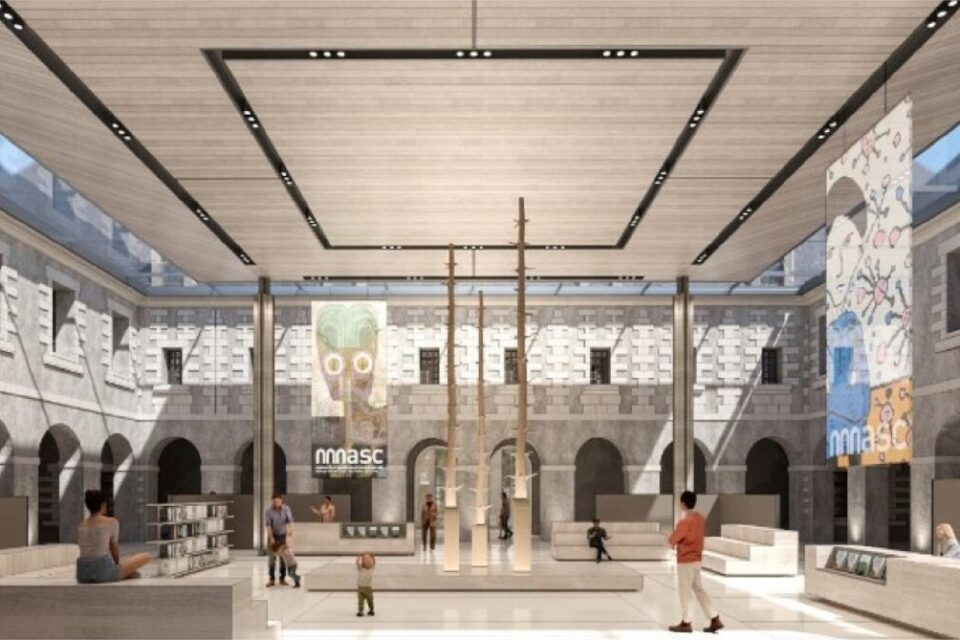 La muséographie est également repensée, deux circuits d’exposition seront créés sur deux niveaux distincts : les expositions temporaires au rez-de-chaussée, de part et d’autre de la Croisée et les expositions permanentes au niveau R+1 dans les trois ailes qui entourent le cloître. Les deux ailes nord et sud seront reliées entre elles par une nouvelle passerelle qui traverse la Croisée, ce qui permettra de créer un parcours d’exposition permanent unique et sans interruption