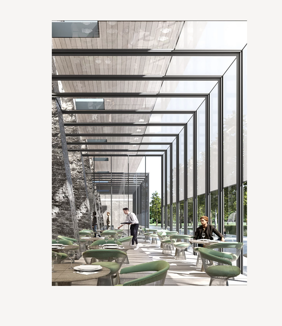 Ces deux zones sont distinctes entre elles et en relation avec la Croisée de manière à assurer une utilisation indépendante au sein du musée. La Croisée va subir une réinvention en tant qu’espace de détente urbain et de rassemblement.