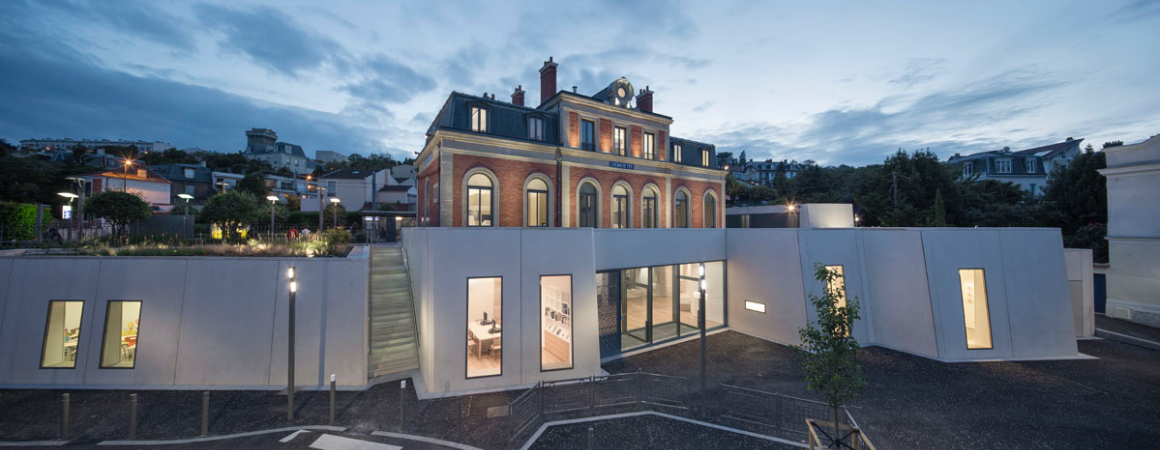 La décision d'une refondation du musée de la ville de Suresnes a été prise dans la claire conscience que la ville de Suresnes était le témoin d'une politique novatrice d'urbanisme social. La conception programmatique de ce musée se devait de mettre l'habitant au cœur de son musée, tout en développant un propos universel. Le choix de reconvertir la gare du Tram T2 Suresnes-Longchamp en musée se situait en parfaite cohérence avec la volonté d'en faire un lieu repère, actif et visible, constituant un "portail" urbain. Malgré une échelle modeste, le bâtiment articule toutes les fonctions d'un grand musée, depuis un accueil transparent très ouvert, des expositions temporaires efficaces, des ateliers pédagogiques ergonomiques, et un parcours sur 2 niveaux autour de l'ancien escalier de la gare. Animé par la volonté d'être largement ouvert sur l'actualité, le MUS est en quelque sorte le prototype d'un nouveau genre de musée local, et quasiment unique par la thématique développée. Comme à leur habitude, les architectes du collectif Encore Heureux, qui s'attaquaient là à leur premier musée, ont mis un grand talent et un grand sens de l'écoute à cet ouvrage teinté de modernité et d'humanisme.