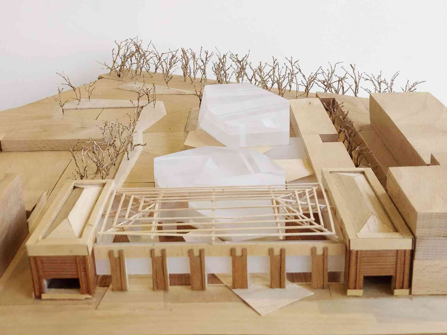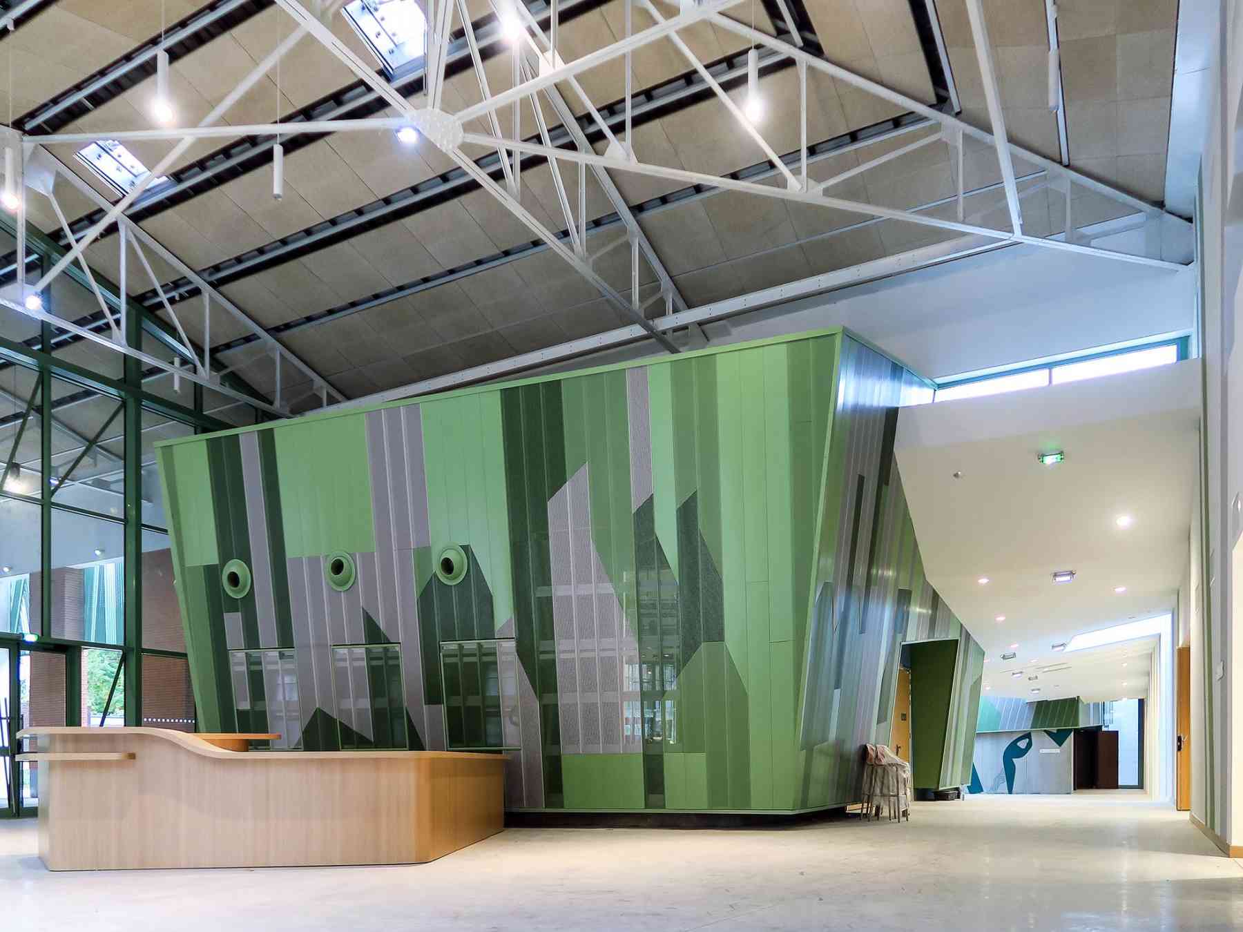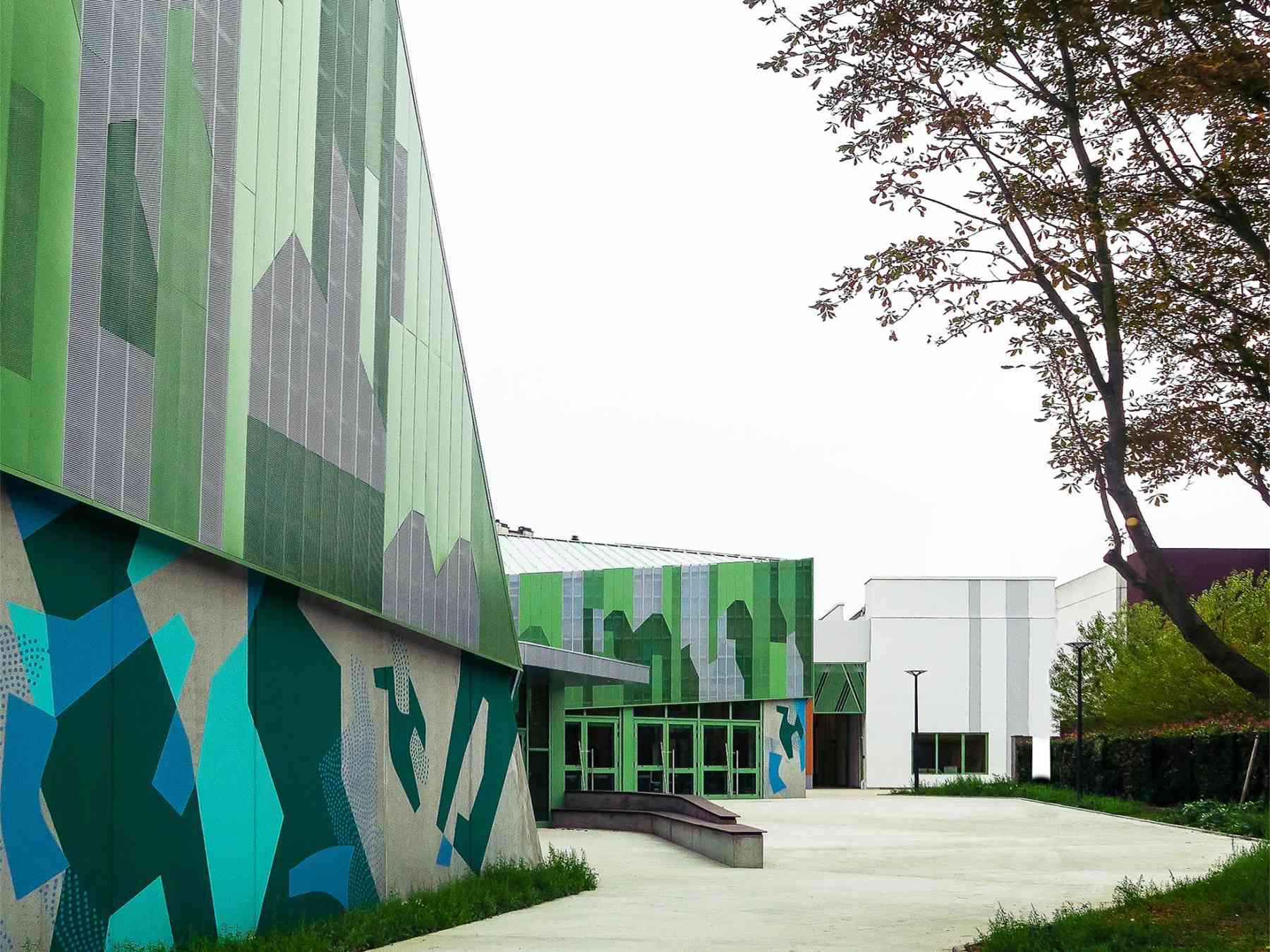Le Palais des Fêtes de Romainville dispose d'un capital affectif au sein de la ville très active au plan culturel et associatif. Construit à partir de la transplantation initiale du pavillon d'exposition de la Pologne à l'exposition universelle de 1936, son obsolescence rendait sa conservation même problématique. L'idée du programme confié à AG Studio a été de favoriser la porosité piétonne et de constituer un 3ème lieu fréquenté en cœur de ville. Le Palais des Fêtes a été recomposé pour accueillir un espace de danse, une maison de la Philosophie, et un foyer public en forme de Passage urbain vers un jardin en cœur d'îlot. Les architectes de Ilimelgo ont œuvré en concevant une nouvelle peau au bâtiment dans des codes contemporains ouvragés.